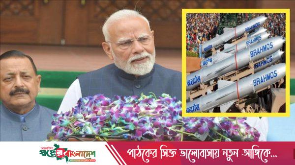 বৈরী প্রতিবেশী দেশ পাকিস্তানকে এবার ব্রাহমোস ক্ষেপণাস্ত্রের ভয় দেখিয়েছেন ভারতের প্রধানমন্ত্রী নরেন্দ্র মোদি। তিনি বলেছেন, পাকিস্তান যদি ফের কোনো ‘অন্যায়’ করে— তাহলে ভারতের তৈরি ব্রাহমোস ক্ষেপণাস্ত্রের আঘাত সইতে হবে দেশটিকে।