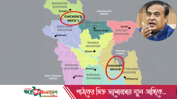 বাংলাদেশের ভৌগোলিক কাঠামো নিয়ে বিতর্কিত মন্তব্য করেছেন ভারতের আসাম রাজ্যের মুখ্যমন্ত্রী হিমন্ত বিশ্ব শর্মা। এক্স (সাবেক টুইটার) এ পোস্ট করা একটি মানচিত্রের মাধ্যমে তিনি দাবি করেন, বাংলাদেশের দুটি ‘চিকেন নেক’