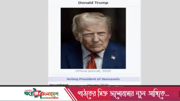 নিজেকে ভেনেজুয়েলার ‘ভারপ্রাপ্ত প্রেসিডেন্ট’ বলে ঘোষণা করেছেন মার্কিন প্রেসিডেন্ট ডোনাল্ড ট্রাম্প। নিজের সামাজিক যোগাযোগমাধ্যম ট্রুথ সোশ্যালে এই ঘোষণা দিয়েছেন তিনি। রোববার (১১ জানুয়ারি) ট্রুথ সোশ্যালে নিজের একটি ছবি পোস্ট করেছেন