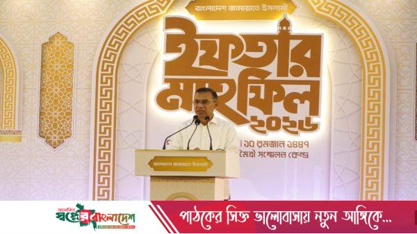 বাংলাদেশ জামায়াতে ইসলামী আয়োজিত ইফতার মাহফিলে অংশগ্রহণ করবেন বিএনপির চেয়ারম্যান ও প্রধানমন্ত্রী তারেক রহমান। অনুষ্ঠানটি অনুষ্ঠিত হবে আজ রাজধানীর বঙ্গবন্ধু আন্তর্জাতিক সম্মেলন কেন্দ্রের চীন-মৈত্রী সম্মেলন কেন্দ্রে। বিএনপির মিডিয়া সেল বিষয়টি