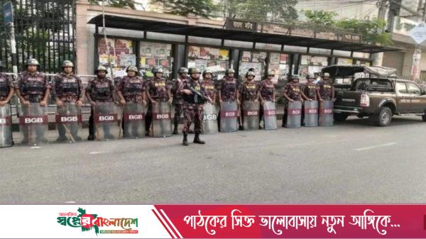 রাজধানী ঢাকা ও আশপাশের জেলার সার্বিক আইন-শৃঙ্খলা রক্ষায় ও নিরাপত্তা নিশ্চিত করতে ১২ প্লাটুন বিজিবি (বর্ডার গার্ড বাংলাদেশ) মোতায়েন করা হয়েছে। শুক্রবার (১৪ নভেম্বর) বিজিবির জনসংযোগ কর্মকর্তা মো. শরিফুল ইসলাম