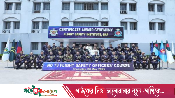বাংলাদেশ বিমান বাহিনীর ৭৩তম ফ্লাইট সেফটি অফিসার্স কোর্স এর সনদপত্র বিতরণ অনুষ্ঠান অদ্য ০৮ মে ২০২৫, বৃহস্পতিবার ফ্লাইট সেফটি ইনস্টিটিউটে অনুষ্ঠিত হয়। সহকারী বিমান বাহিনী প্রধান (পরিচালন) এয়ার ভাইস মার্শাল