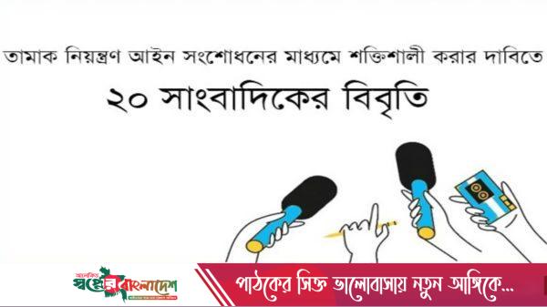 জনস্বাস্থ্য সুরক্ষার জন্য বিদ্যমান ধূমপান ও তামাকজাত দ্রব্য ব্যবহার (নিয়ন্ত্রণ) আইন পুনসংশোধনের মাধ্যমে আরও শক্তিশালী করা প্রয়োজন জানিয়েছেন ২০ জন সাংবাদিক। বুধবার (১৯ নভেম্বর) বিকেলে তারা গণমাধ্যমে একটি যৌথ