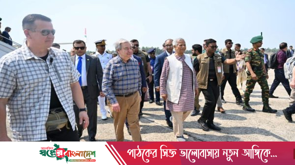অন্তর্বর্তী সরকারের প্রধান উপদেষ্টা ড. মুহাম্মদ ইউনূস ও জাতিসংঘ মহাসচিব অ্যান্তোনিও গুতেরেস কক্সবাজারে পৌঁছেছেন। শুক্রবার (১৪ মার্চ) দুপুর পৌনে ১টায় বাংলাদেশ বিমানের একটি বাণিজ্যিক ফ্লাইটে কক্সবাজার বিমানবন্দরে পৌঁছান তারা। আজ