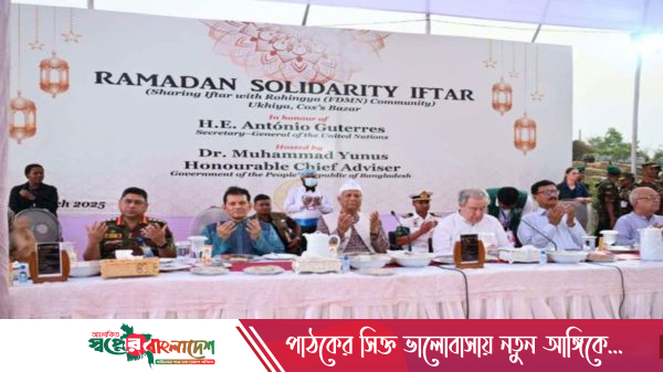 প্রধান উপদেষ্টা ড. মুহাম্মদ ইউনূস এবং জাতিসংঘ মহাসচিব আন্তোনিও গুতেরেস কক্সবাজারের উখিয়ায় রোহিঙ্গা শরণার্থী ক্যাম্পে প্রায় এক লাখ রোহিঙ্গা শরণার্থীর সঙ্গে ইফতার করেছেন। প্রধান উপদেষ্টার উদ্যোগে শুক্রবার (১৪ মার্চ) এই