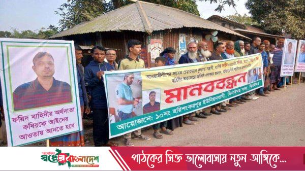 ঝিনাইদহে আওয়ামী লীগ নেতা ও সাবেক ইউপি চেয়ারম্যান ফরিদসহ তার সহযোগীদের গ্রেপ্তারের দাবিতে মানববন্ধন করেছেন এলাকাবাসী। মঙ্গলবার (২৫ নভেম্বর) বিকেলে সদর উপজেলার বাকড়ি বাজারে এ কর্মসূচির আয়োজন করে হরিশংকরপুর ইউনিয়নবাসী।