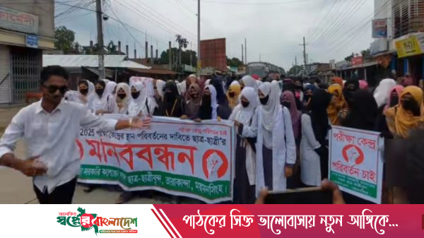 ময়মনসিংহের তারাকান্দায় ফজলুল হক চৌধুরী মহিলা কলেজ ২০২৪-২০২৫ শিক্ষাবর্ষে এইচ এস সি পরিক্ষার জন্য কেন্দ্র নির্ধারণ করেন ময়মনসিংহ শিক্ষাবোর্ড। বিপরীতে তারাকান্দা সরকারী কলেজের শিক্ষার্থীরা এইচএসসি পরীক্ষার কেন্দ্র পরিবর্তনের দাবিতে বিক্ষোভ মানববন্ধন