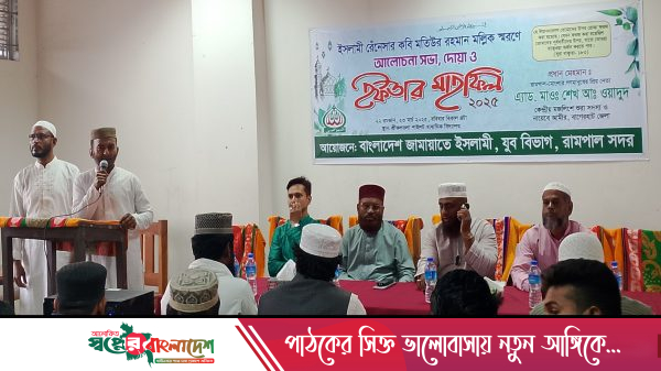 পবিত্র মাহে রমজান উপলক্ষে বাগেরহাট রামপালে সদর ইউনিয়ন বাংলাদেশ জামাত ইসলাম যুব বিভাগের আয়োজনে ইসলামী রেনেসাঁর কবি মতিউর রহমান মল্লিক স্মরণে আলোচনা সভা, দোয়া ও ইফতার মাহফিল অনুষ্ঠিত। আজ ২২