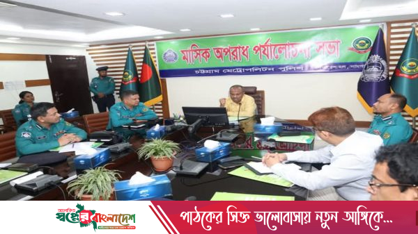চট্টগ্রাম মেট্রোপলিটন পুলিশের মাসিক অপরাধ পর্যালোচনা সভা অনুষ্ঠিত।অদ্য ০৯/০৩/২০২৫ খ্রি. বিকাল ০৩.০০ ঘটিকায় দামপাড়াস্থ চট্টগ্রাম মেট্রোপলিটন পুলিশ সদরদ প্তরের সম্মেলন কক্ষে সিএমপির ফেব্রুয়ারি/২০২৫ মাসের মাসিক অপরাধ পর্যালোচনা সভা অনুষ্ঠিত হয়।