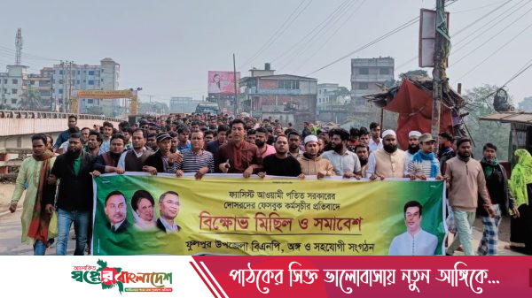 ফেসবুক কর্মসূচির প্রতিবাদে বিক্ষোভ প্রতিবাদ মিছিল ও পথ সমাবেশ। ফ্যাসিবাদী আওয়ামী পতিত সরকারের দোসরদের ফেসবুক কর্মসূচির প্রতিবাদে ফুলপুর উপজেলা বিএনপি অঙ্গ ও সহযোগী সংগঠনের উদ্যোগে বিক্ষোভ মিছিল ও সমাবেশ অনুষ্ঠিত