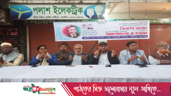 পূবাইলে শহীদ প্রেসিডেন্ট জিয়াউর রহমানের (বীর উত্তম) ৮৯ তম জন্মদিন উপলক্ষে আলোচনা ও দোয়া অনুষ্ঠিত। গাজীপুর মহানগরীর পূবাইল থানাধীন মীরের বাজারস্থ ঘাসফড়িং হোটেল সংলগ্ন শহীদ প্রেসিডেন্ট জিয়াউর রহমানের (বীর উত্তম)