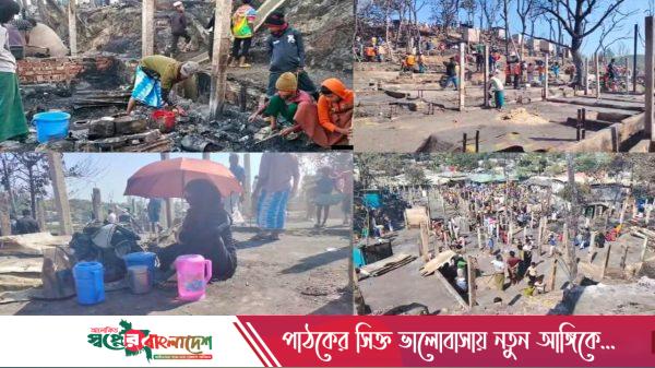 কক্সবাজারের উখিয়ার ১৬ নম্বর রোহিঙ্গা ক্যাম্পে মধ্যরাতে সংঘটিত ভয়াবহ অগ্নিকাণ্ডে মুহূর্তেই শত শত মানুষের মাথা গোঁজার শেষ আশ্রয়টুকু হারিয়ে গেছে। আগুনে পুড়ে ছাই হয়ে গেছে সাড়ে চার শতাধিক বসতঘর, একাধিক