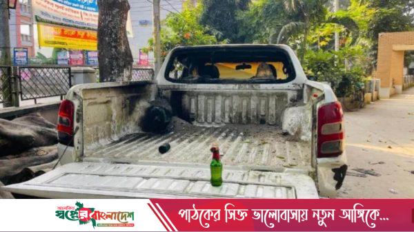 গোপালগঞ্জে গণপূর্ত বিভাগ ও গ্রামীণ ব্যাংকের একটি শাখায় পেট্রোল বোমা নিক্ষেপের ঘটনা ঘটেছে। বৃহস্পতিবার (১৩ নভেম্বর) ভোরে দুর্বৃত্তদের নিক্ষেপ করা পেট্রোল বোমায় আগুন লেগে পুড়ে গেছে গণপূর্ত বিভাগের একটি পিক-আপভ্যান।