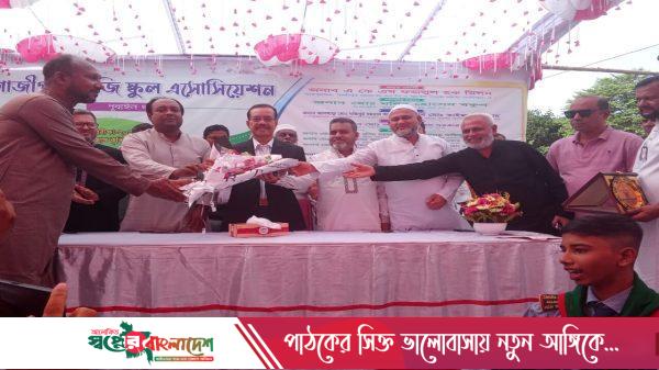 গাজীপুর মহানগরীর পূবাইল থানাধীন মিরের বাজার আমির উদ্দিন মুন্সি স্কুল এন্ড কলেজ মাঠে গাজীপুর কেজি স্কুল এসোসিয়েশন পূবাইল থানা শাখার উদ্যোগে কেজি স্কুলের ২০২৪ সালের বৃত্তি প্রাপ্ত ছাত্র-ছাত্রীদের সংবর্ধনা অনুষ্ঠান