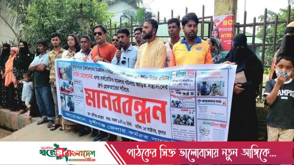 ইন্ডিপেনডেন্ট টেলিভিশনের চিত্রগ্রাহক ও নিউজ সেভেন্টি ওয়ান টিভির এডিটর রাহিদ হোসেনের ওপর নৃশংস সন্ত্রাসী হামলার ঘটনায় জড়িতদের দ্রুত গ্রেফতারের দাবিতে মুন্সিগঞ্জে মানববন্ধন অনুষ্ঠিত হয়েছে। বুধবার সকাল ১১টায় মুন্সিগঞ্জ প্রেসক্লাবের সামনে