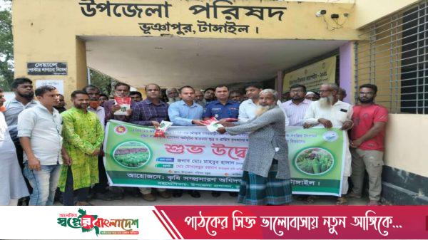 টাঙ্গাইলের ভূঞাপুরে ২০২৫-২৬ অর্থ বছরে রবি/২০২৫-২৬ মৌসুমে বসতবাড়িতে এবং মাঠে চাষযোগ্য আগাম শীতকালীন শাক-সবজির উৎপাদন বৃদ্ধির লক্ষ্য প্রণোদনা কর্মসূচির আওতায় ক্ষুদ্র ও প্রান্তিক কৃষকদের মাঝে বিনামূল্য বীজ ও সার বিতরণ
