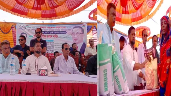 বাগেরহাটের রামপাল উপজেলা ১নং গৌরম্ভ ইউনিয়নে আশ্রয়ন প্রকল্পের হতদরিদ্র পরিবারের মাঝে নগদ অর্থ,শাড়ি, লুঙ্গি ও চাউল বিতরণ করা হয়। সোমবার (২৯ সেপ্টেম্বর) ২০২৫, সকাল ১১টায় গৌরম্ভা ইউনিয়ন বিএনপি, অঙ্গ ও