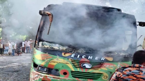মুন্সীগঞ্জের টঙ্গীবাড়িতে যাত্রীবাহী বাসের ধাক্কায় মাদ্রাসা থেকে বাড়ি ফেরার পথে আরভি (৬) নামে এক শিশু শিক্ষার্থী নিহত হয়েছে। এ ঘটনার জেরে ঘাতক বাসে আগুন ধরিয়ে দিয়েছে বিক্ষুব্ধ জনতা। বুধবার দুপুর