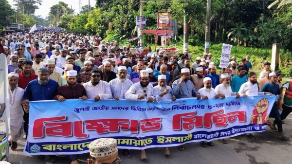 বাগেরহাটে জুলাই সনদ বাস্তবায়ন ও পিআর পদ্ধতিতে জাতীয় নির্বাচনসহ ৫ দফা দাবিতে বিক্ষোভ মিছিল করেছে বাংলাদেশ জামায়েতে ইসলামী।শুক্রবার (২৬ সেপ্টেম্বর) বিকেলে সদর উপজেলা ও বাগেরহাট পৌর জামায়াতের উদ্যোগে শহরের দশানি