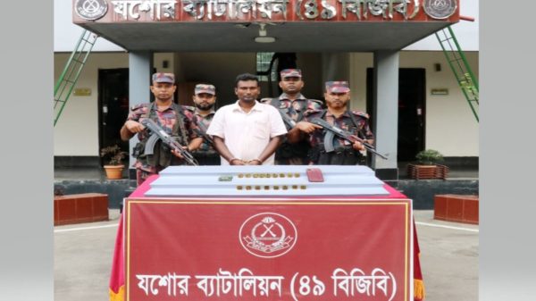 যশোর নড়াইল-মহাসড়কের দারাজহাট এলাকা থেকে প্রায় ২ কেজি ওজনের ১৭টি স্বর্ণের বারসহ এক ব্যক্তিকে আটক করেছে বর্ডার গার্ড বাংলাদেশ (বিজিবি)। বৃহস্পতিবার (১১ই সেপ্টেম্বর)বেলা ১১টা৩০মিঃ দিকে গোপন সংবাদের ভিত্তিতে যশোর ব্যাটালিয়ন