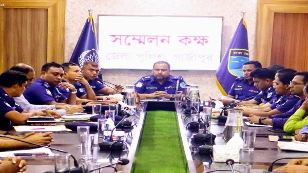 জেলা পুলিশ, গাজীপুর এর আয়োজনে পুলিশ সুপার, গাজীপুর এর সম্মেলন কক্ষে আসন্ন শারদীয় দূর্গাপূজা-২০২৫ উপলক্ষ্যে জেলার সকল পূজা মন্ডপসমূহের সার্বিক নিরাপত্তা ও আইন শৃঙ্খলা পরিস্থিতি নিয়ন্ত্রণ সংক্রান্ত মতবিনিময় সভা অনুষ্ঠিত
