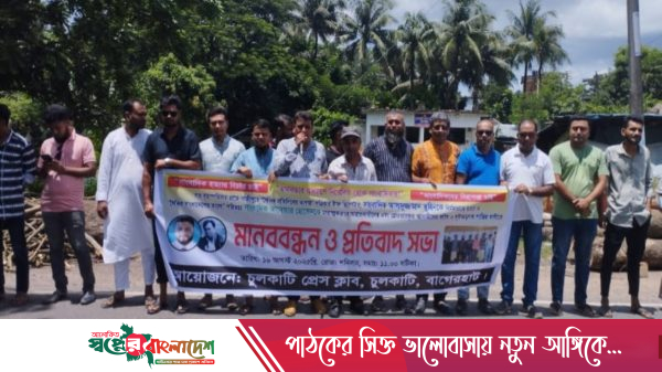 প্রতিদিনের কাগজে কর্মরত সাংবাদিক আসাদুজ্জামান তুহিন ও বাংলাদেশের কাগজ পত্রিকার সাংবাদিক আনোয়ার হোসেনকে আহতকারীদেও ও হত্যাকারীদের ফাঁসির দাবী ও দেশব্যাপী সাংবাদিক নির্যাতনের প্রতিবাদে বাগেরহাটের চুলকাটি প্রেসক্লাবের কর্মরত সাংবাদিকদের আয়োজনে মানববন্ধন