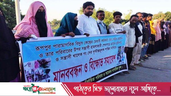 নাটোরের নলডাঙ্গা উপজেলায় রূপপুর পারমাণবিক বিদ্যুৎ কেন্দ্রের কর্মকর্তা সজিব হোসেন ও তার পরিবারের ওপর সন্ত্রাসী হামলার বিচারের দাবিতে মানববন্ধন ও সমাবেশ করেছে ভুক্তভোগী পরিবার ও গ্রামবাসী। শুক্রবার (২৮ নভেম্বর) বিকেল