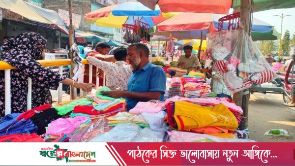 ঈদুল ফিতর উপলক্ষে শেষ মুহূর্তে বগুড়ার দুপচাঁচিয়ায় ঈদের বাজার জমে উঠেছে। নামিদামি শপিংমল থেকে শুরু করে ফুটপাত—সবখানেই বেচাকেনার ভিড়। পরিবার-পরিজন নিয়ে বিভিন্ন শ্রেণি-পেশার মানুষ ভিড় করছেন বিপণিবিতানগুলোতে। দেখে মনে হচ্ছে,