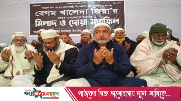 বিএনপির চেয়ারপারসন ও সাবেক প্রধানমন্ত্রী বেগম খালেদা জিয়ার মাগফিরাত কামনায় গোপালগঞ্জের কোটালীপাড়ায় দোয়া ও মিলাদ মাহফিল অনুষ্ঠিত হয়েছে। বৃহস্পতিবার (৮ জানুয়ারি) জোহরবাদ উপজেলার কাজী মন্টু ফিলিং স্টেশনের পেছনের মাঠে উপজেলা