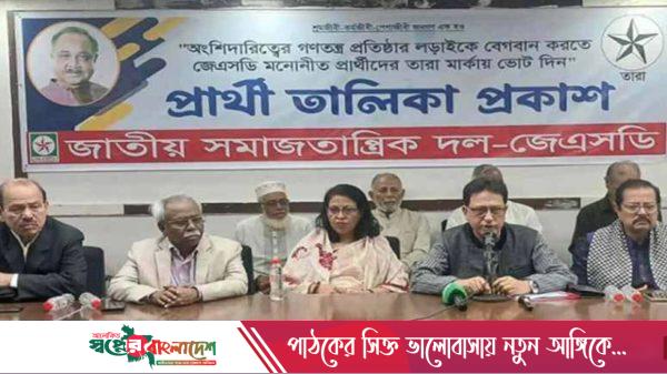 ত্রয়োদশ জাতীয় সংসদ নির্বাচনে ১৭০ আসনে প্রাথমিক প্রার্থী তালিকা প্রকাশ করেছে জাতীয় সমাজতান্ত্রিক দল, জেএসডি। রোববার (৩০ নভেম্বর) জাতীয় প্রেস ক্লাবের জহুর হোসেন চৌধুরী হলে এক সংবাদ সম্মেলনে এ তালিকা