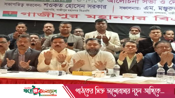 গাজীপুর মহানগর বিএনপি’র আয়োজনে শহীদ প্রেসিডেন্ট জিয়াউর রহমানের (বীর উত্তম) ৮৯ তম জন্মদিন উপলক্ষে আলোচনা ও দোয়া অনুষ্ঠিত । গাজীপুর মহানগর বিএনপির আয়োজনে শহীদ প্রেসিডেন্ট জিয়াউর রহমানের (বীর উত্তম)