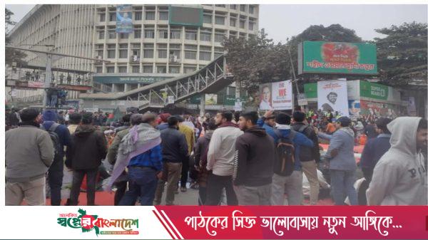 পূর্বঘোষিত কর্মসূচি অনুযায়ী ওসমান হাদি হত্যার বিচার দাবিতে শাহবাগ মোড় অবরোধ করেছেন ইনকিলাব মঞ্চের নেতাকর্মীরা। এর ফলে সড়কটি দিয়ে যান চলাচল বন্ধ হয়ে গেছে। সোমবার (২৯ ডিসেম্বর) দুপুর ২টায় শহরের
