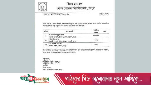রংপুরের বেগম রোকেয়া বিশ্ববিদ্যালয়ের (বেরোবি) বিজয়-২৪ হলে বাংলা বিভাগের দ্বীন ইসলাম নামে এক শিক্ষার্থীকে একই বিভাগের কয়েকজন সিনিয়র শিক্ষার্থীর র্যাগিংয়ের অভিযোগ উঠেছে। এ ঘটনা পর র্যাগিংয়ের শিকার ওই শিক্ষার্থী অসুস্থ