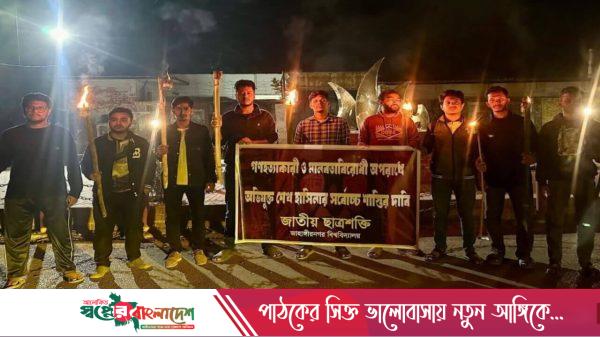 জাহাঙ্গীরনগর বিশ্ববিদ্যালয়ে গণহত্যা ও মানবতাবিরোধী অপরাধে অভিযুক্ত শেখ হাসিনার সর্বোচ্চ শাস্তির দাবিতে জাতীয় ছাত্রশক্তির মশাল মিছিল অনুষ্ঠিত হয়েছে। রোববার (১৬ নভেম্বর) বিশ্ববিদ্যালয়ের বটতলা থেকে মিছিলটি শুরু হয়ে অদম্য-২৪ স্তম্ভের সামনে