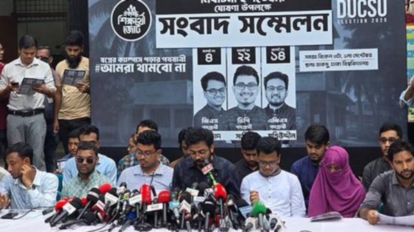 অভ্যুত্থানের ‘৩৬ জুলাই’য়ের আদলে ৩৬ দফা ইশতেহার দিয়েছে ছাত্রশিবির সমর্থিত প্যানেল ঐক্যবদ্ধ শিক্ষার্থী জোট। সোমবার (১ সেপ্টেম্বর) ঢাকা বিশ্ববিদ্যালয়ের ডাকসু ভবনের সামনে আয়োজিত এক সংবাদ সম্মেলনে এই প্যানেলের এজিএস প্রার্থী
